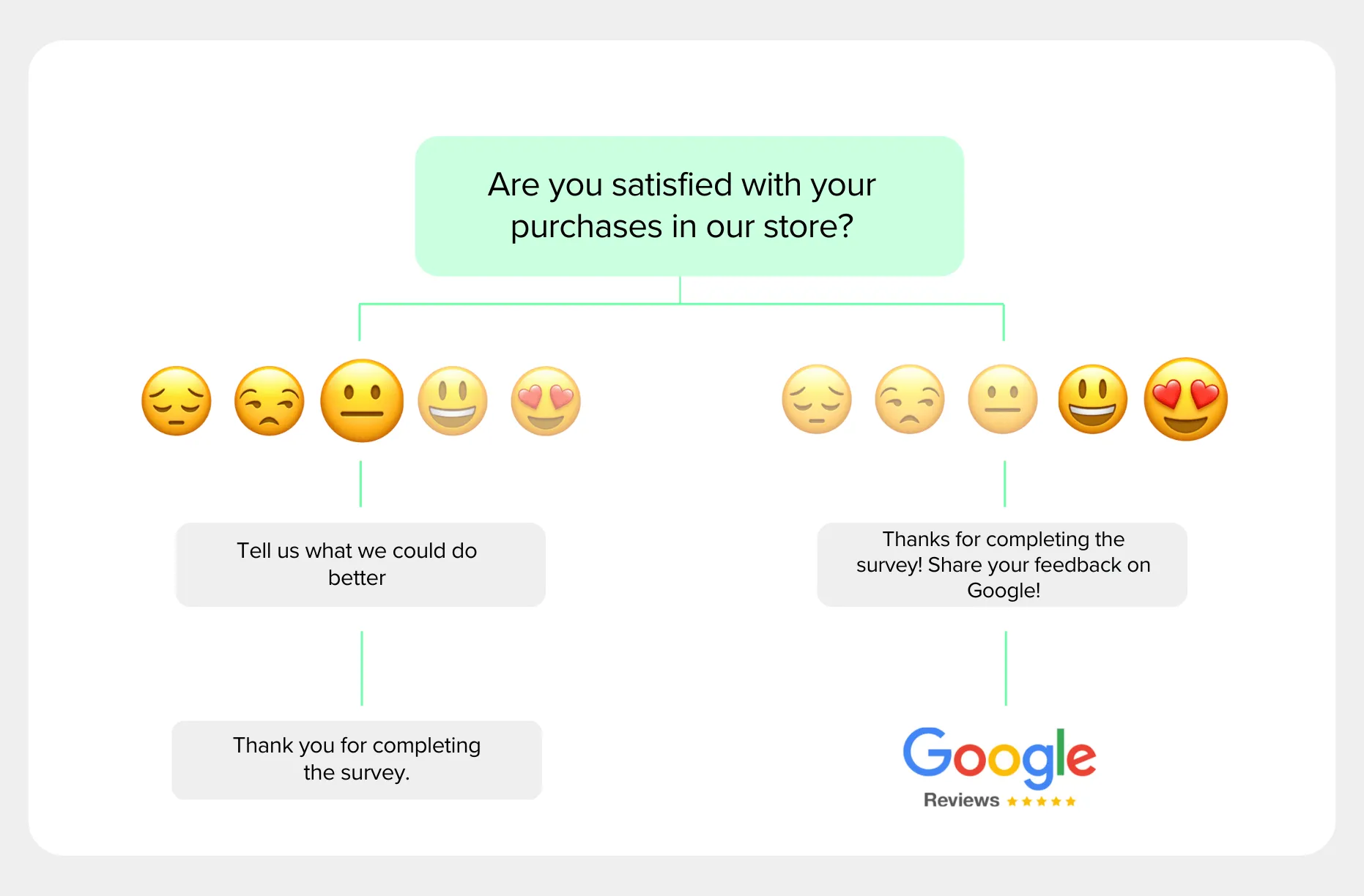 You can run this workflow using a short customer satisfaction survey template and a follow-up message that links to your Google review page.